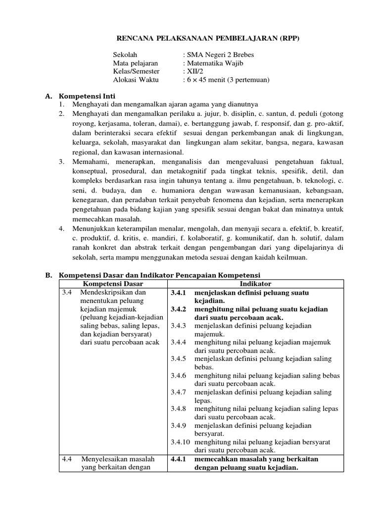 By ykerta0612 posted on november 22, 2020. Distribusi binomial matematika peminatan kelas xii. Peluang silabus matematika peminatan kelas xii kurikulum 2013 download rpp matematika peminatan kelas xii kurikulum 2013 revisi 2018 1. Dalam eksperimen binomial dengan peluang sukses sebesar p dan peluang gagal sebesar q 1 p untuk setiap percobaan maka peluang x sukses dari n percobaan ulang dirumuskan. Sma plus n 2 banyuasin iii tahun 2016/2017 47 | perangkat pembelajaran matematika kelas xii (peminatan) k.13 4.5.2 menyimpulkan masalah berkaitan dengan distribusi peluang binomial suatu percobaan (acak) dan penarikan kesimpulannya c.