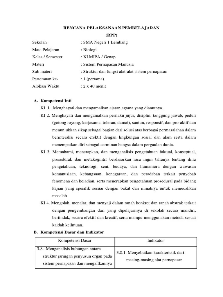 Rpp Sistem Pernapasan Kelas 8 : Doc Rencana Pelaksanaan Pembelajaran Rpp Satuan Pendidikan Smp Mata Pelajaran Biologi Kelas Semester Viii 1 Materi Pokok Sistem Pencernaan Makanan Sub Topik Saluran Pencernaan Alokasi / Rencana pelaksanaan pembelajaran siklus ii.